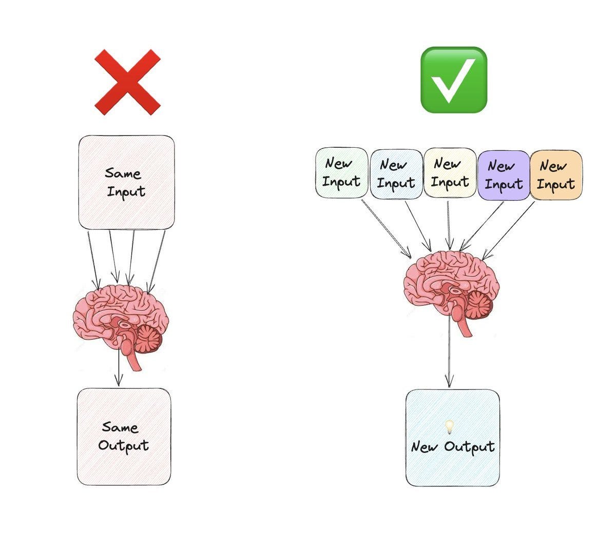 The mistake people make is treating creativity like productivity. They try to work harder and expect creativity to appear. Instead, sprinkle in new inputs and watch new outputs appear.