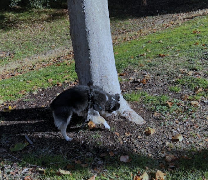 That reframe completely changed my subjective experience. Instead of failing at walking, I was succeeding at being a sniff-assistant.”